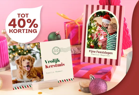 De actiecode KERST geeft 25% korting op fotoboeken, 10% korting op fotoafdrukken en 30% korting op kalenders en agenda's. Met de code ontvang je 25% korting op kaartjes tot 40 stuks en 40% korting op kaartjes vanaf 40 stuks. Ook ontvang je 10% korting op fotocadeaus tot €30 en 20% korting op fotocadeaus vanaf €30.